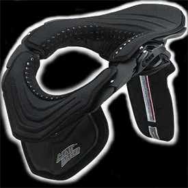 The Leatt-Brace is an injection produced glass reinforced nylon or carbon fiber and Kevlar neck brace system designed by medical professionals and motorcycle enthusiasts to help prevent: Hyperflexion: extreme forward head movement Hyperextension: extreme rearward head movement Lateral Hyperflexion: extreme sideways head movement Axial loading: compression of the spinal column due to the effect of force on the helmet Posterior hypertranslation: rearward movement of the head/helmet on the neck There is currently no other neck protection system available for motorcyclists that can effectively help prevent all of the above potential injuries. The brace is also used and endorsed by some of the biggest names in motocycle racing. free domestic shipping CAUSE LETS FACE IT $395 IS WORTH MORE THAN $1000'S IN HOSPITAL BILLS OR A LIFETIME IN A WHEELCHAIR